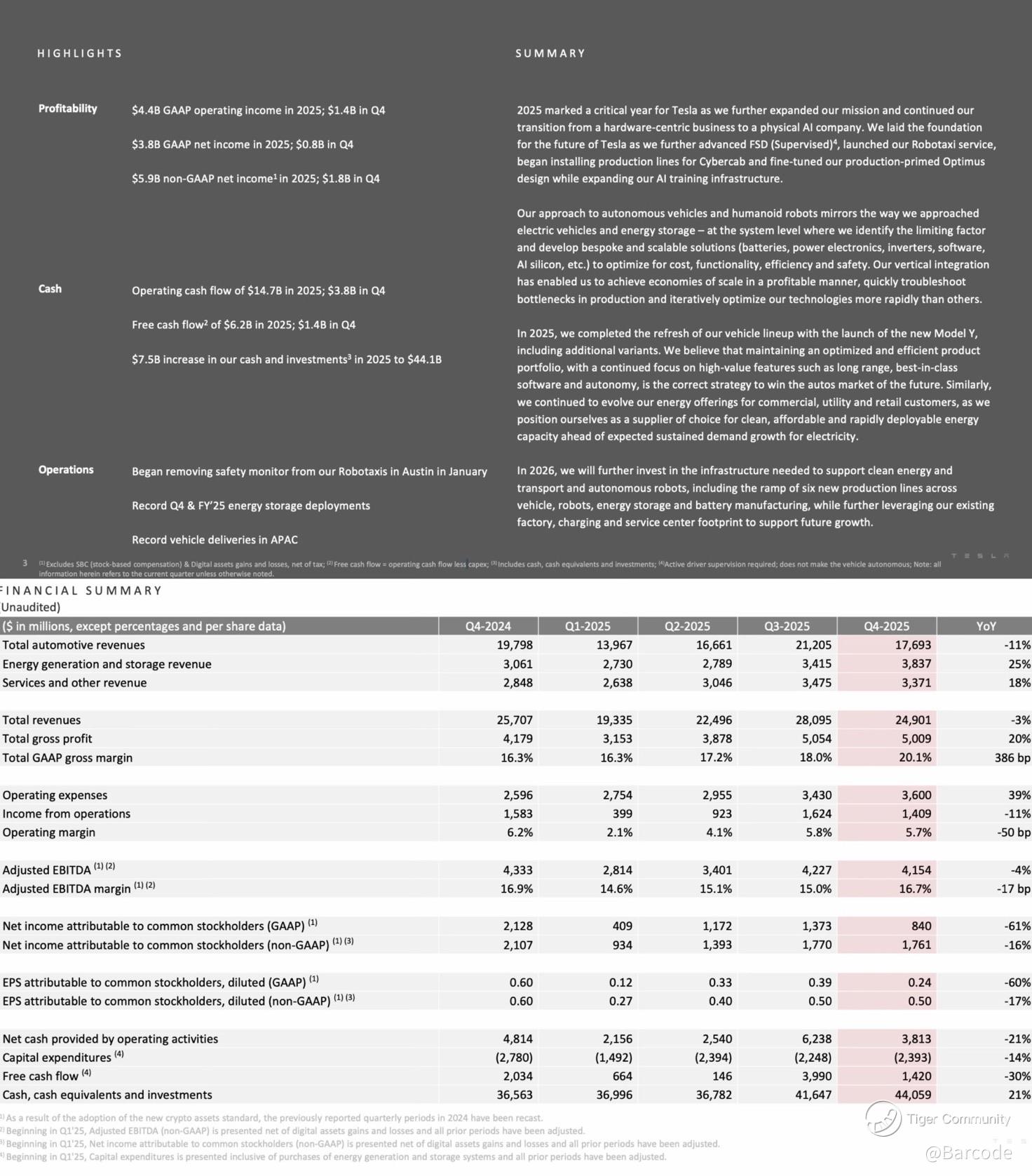 $TSLA Q4 FY2025 Earnings