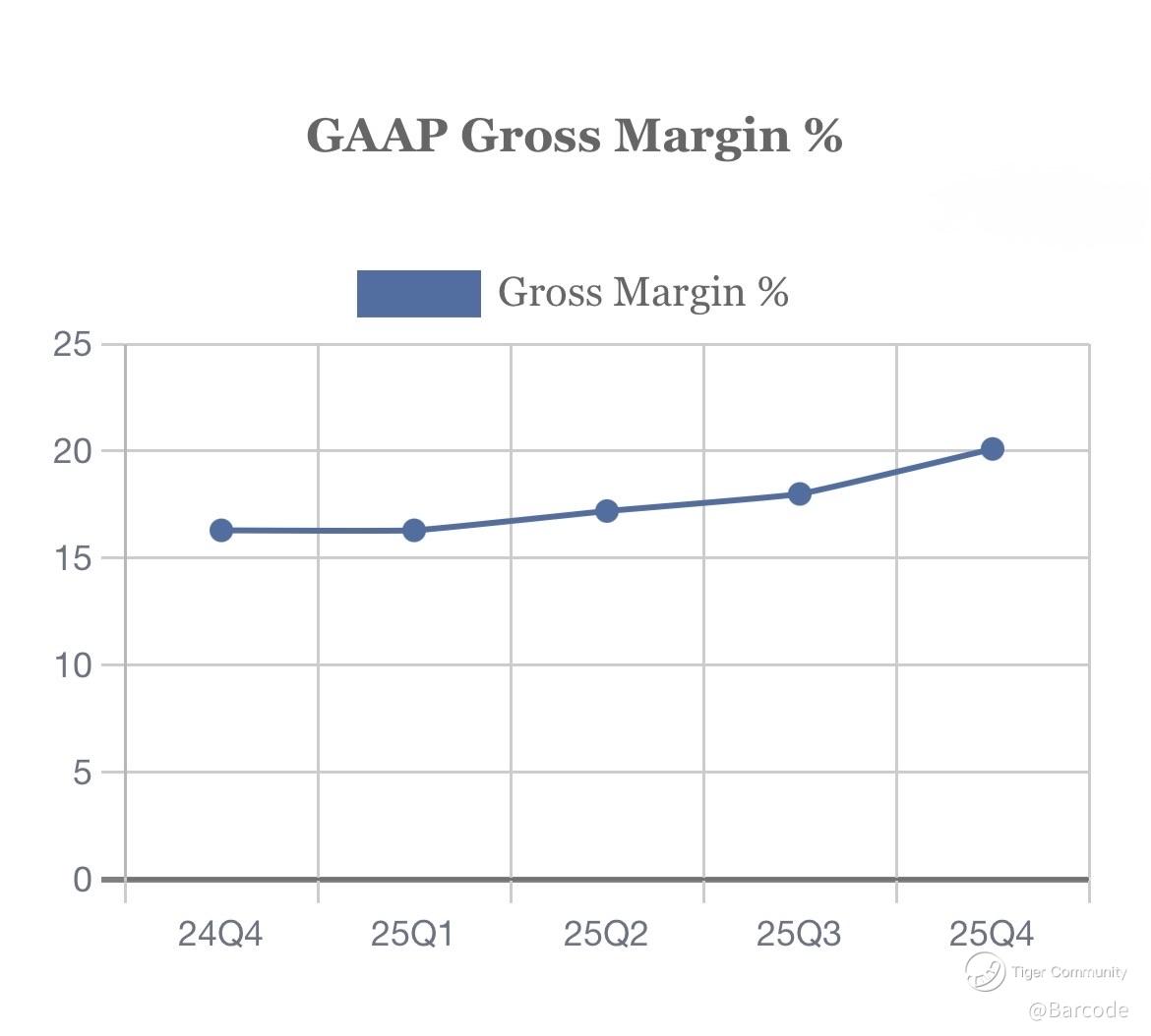GAAP gross margin rebounded to ~20.1%, reversing multi-quarter compression