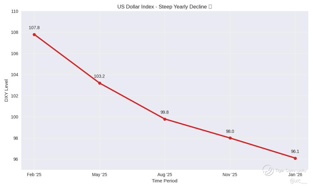 The US Dollar Index has plunged to approximately 96.1, marking its weakest stance since early 2022 as fresh policy signals and global shifts fuel aggressive selling. Over the past year, the greenback has shed nearly 11%, its sharpest drop in years, leaving investors scrambling and everyday purchases feeling pricier. ππ
