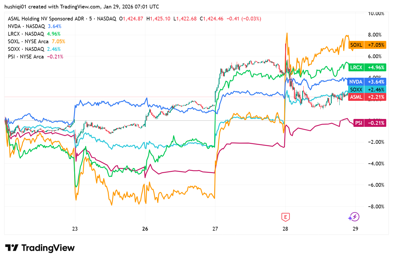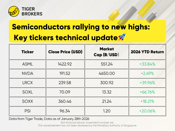 In Tiger Community, many investors shared their Winning trades on $ASML Holding NV(ASML)$ , $Direxion Daily Semiconductors Bull 3x Shares(SOXL)$ , $NVIDIA(NVDA)$ , $iShares Semiconductor ETF(SOXX)$ , or $INVESCO SEMICONDUCTORS ETF(PSI)$ .