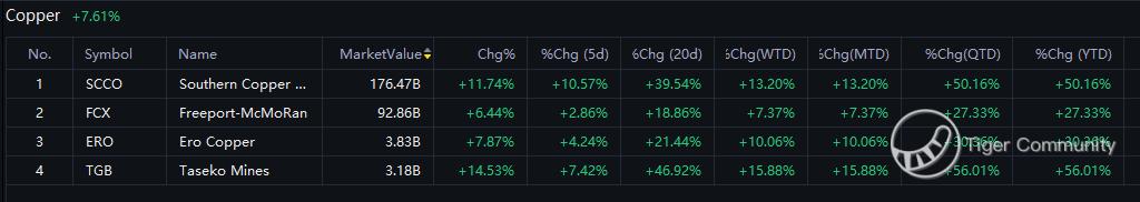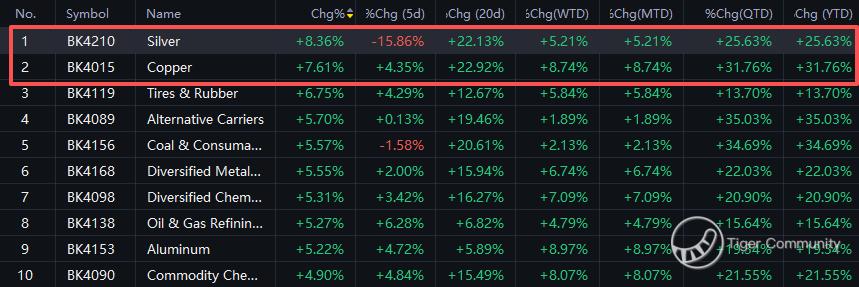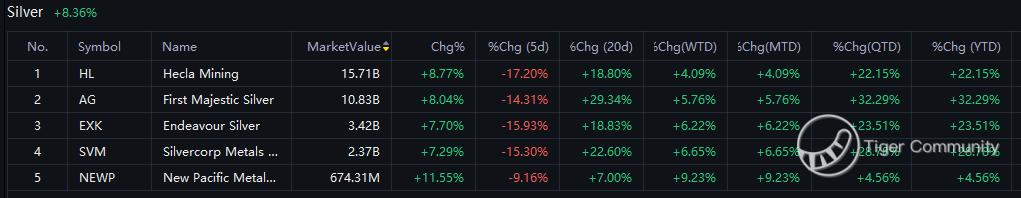 The best-performing concepts are Silver & Copper. Considering the different perceptions of the stock, this time TigerPicks chose $New Pacific Metals Corp.(NEWP)$ $Hecla Mining(HL)$ $First Majestic Silver(AG)$ $Endeavour Silver(EXK)$ $Silvercorp Metals Inc(SVM)$ $Taseko Mines(TGB)$ $Southern Copper Corp(SCCO)$ $Ero Copper(ERO)$ $Freeport-McMoRan(FCX)$ to have a fundamental highlight to help users understand it better.