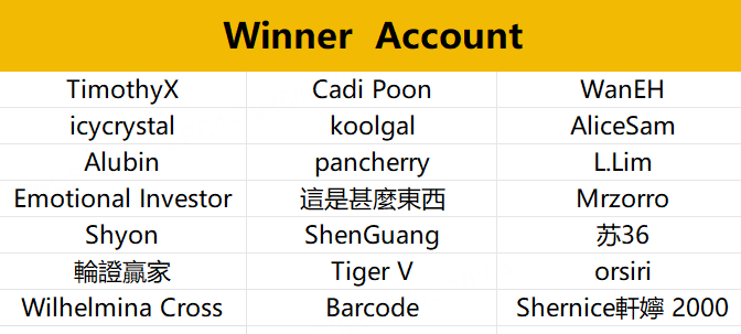 Yesterday's winners: