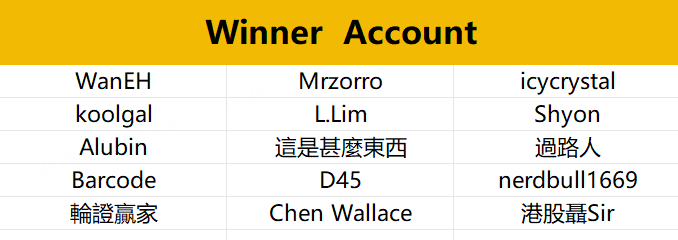 Yesterday's winners: