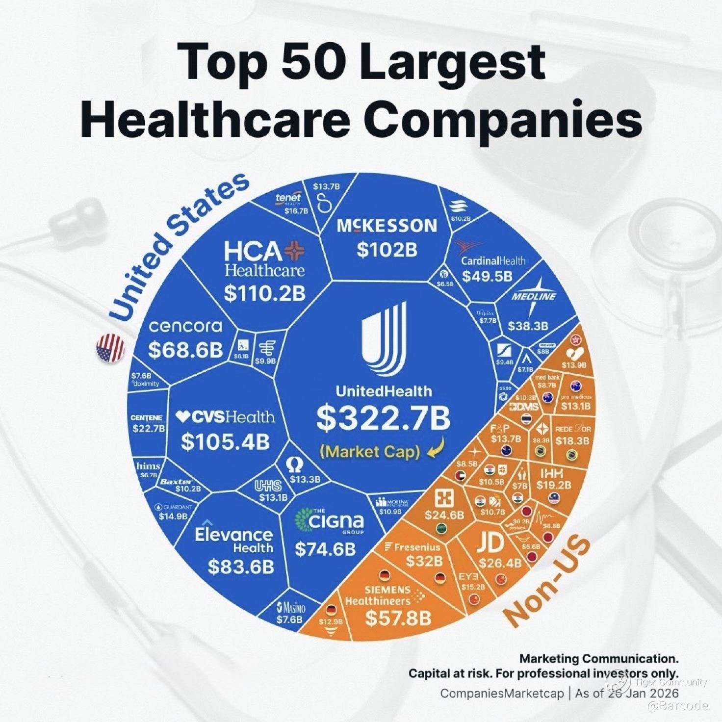 π£οΈ The 50 largest healthcare companies in the world ranked by market cap. $UNH $ELV $CVS π₯