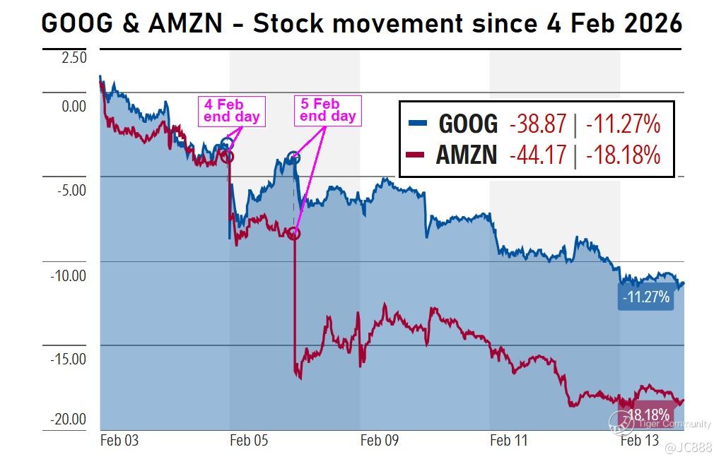 Both GOOG and AMZN reported their 2025’s last quarter earnings on 4 Feb 2026 and 5 Feb 2026 respectively, after market closing. (see above)