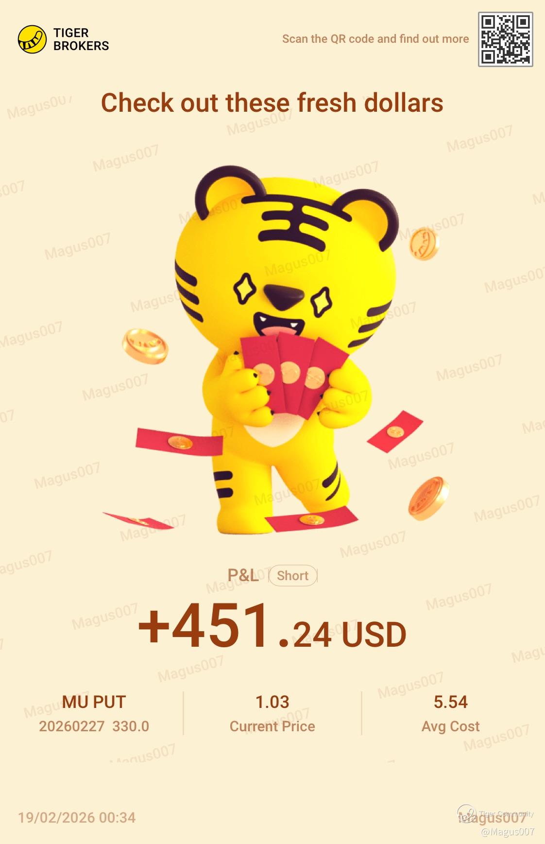 $MU 20260227 330.0 PUT$ Looking forward to my CSP clearing $500 mark soon! All for the 50 coiners [Happy] [Happy] [Miser]