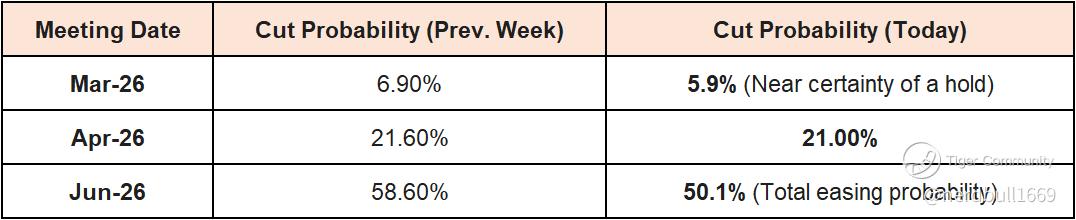 Market Pricing: The probability of a June cut has dropped significantly, and the market is now forced to price in the risk of "higher for even longer."