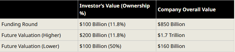 In the lower valuation scenario above, a $160 billion valuation in the future (at IPO, for example) would mean employees, founders, and other common equity shareholders would literally be wiped out!