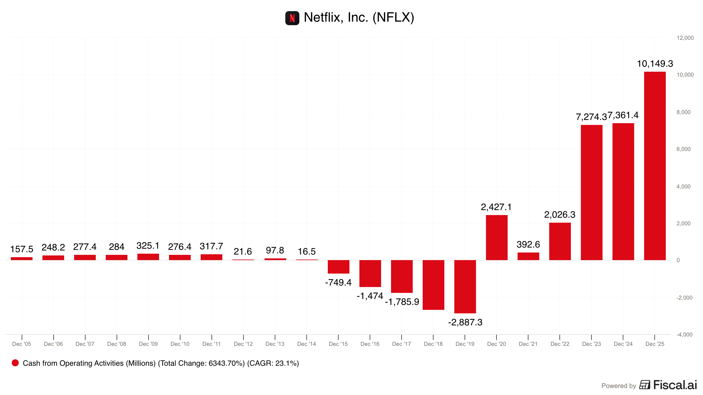 $Netflix(NFLX)$ had a profitable DVD business before getting into streaming, and it didn’t go into negative operating cash flow territory until it was going for the kill against cable.