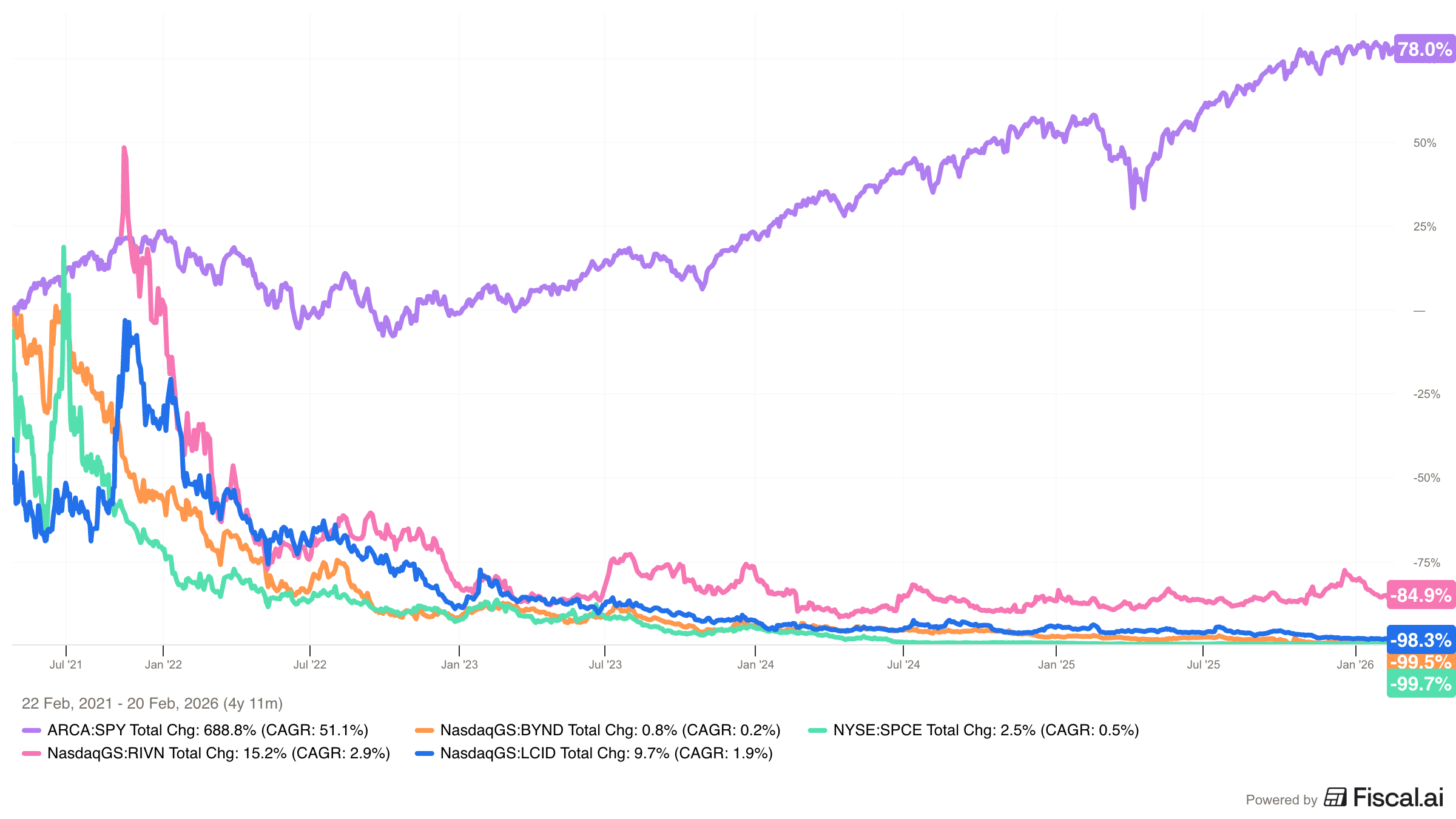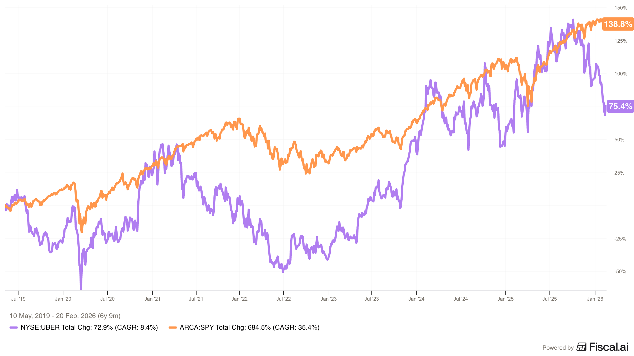 For every $Uber(UBER)$ — which hasn’t even beaten the market since going public — there’s a $Beyond Meat, Inc.(BYND)$ , $Virgin Galactic(SPCE)$ , $Lucid Group Inc(LCID)$ , or $Rivian Automotive, Inc.(RIVN)$ , which have all been disasters for investors despite massive hype.