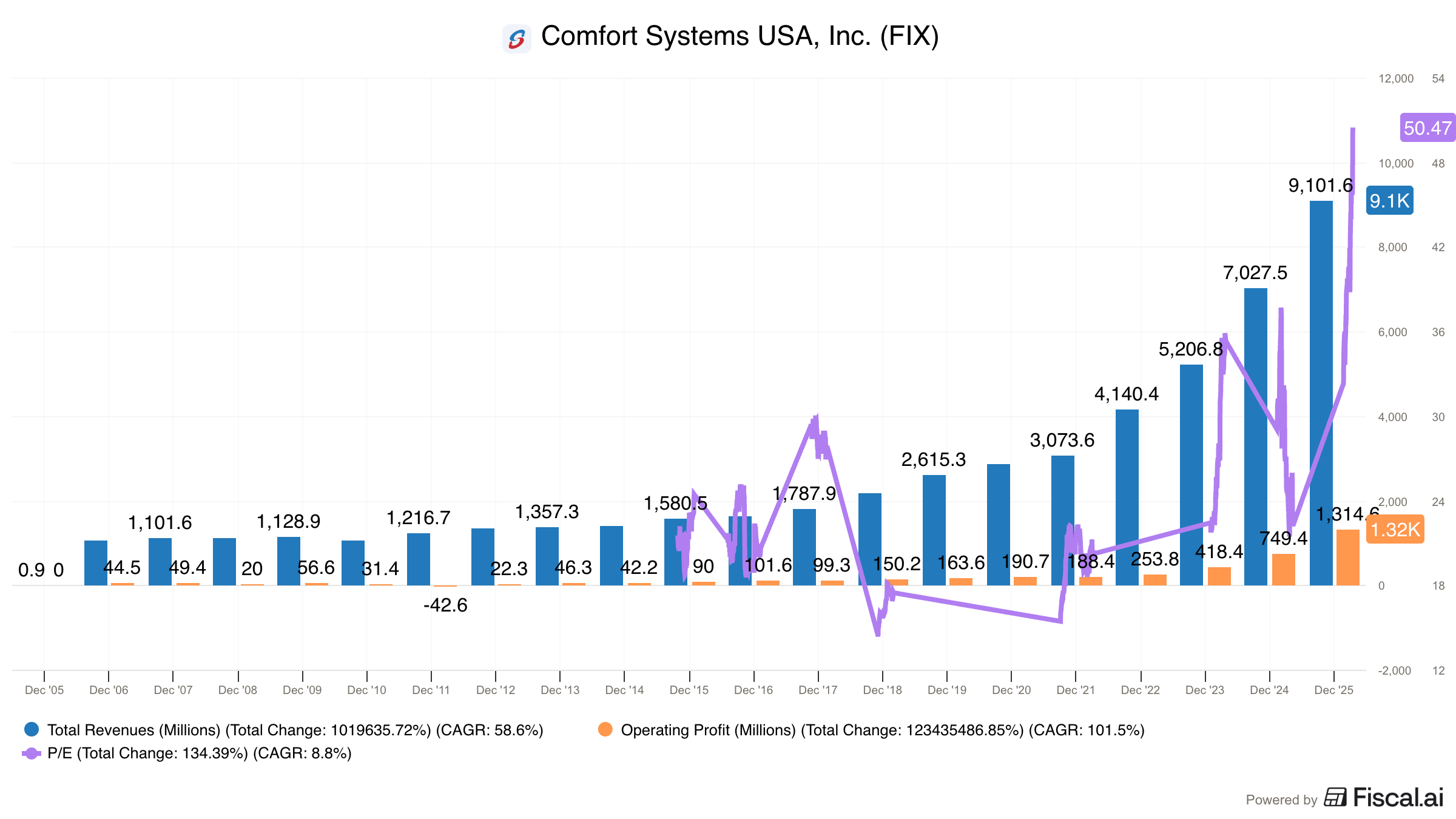 But the downstream impact on the economy and the stock market is getting a little crazy. Half of U.S. economic growth is now driven by AI spending. Stocks like Comfort Systems, which does industrial HVAC installations, are soaring because of AI.