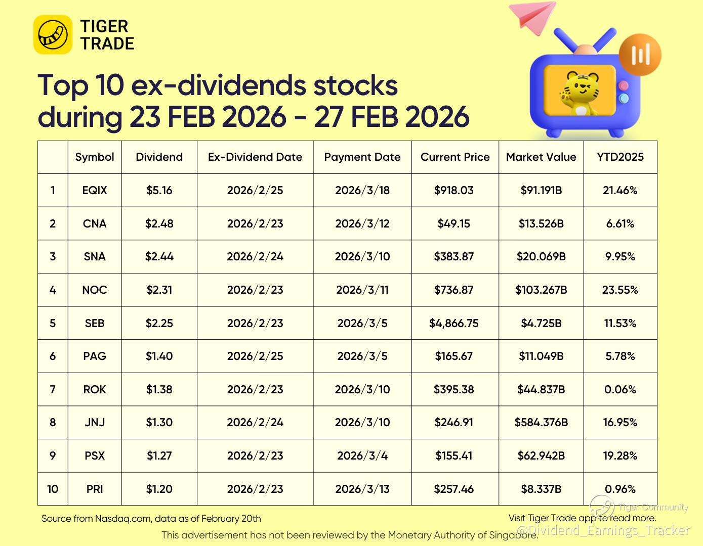 🎁Capturing Top 10 Ex_dividend: EQIX, CNA, SNA, NOC, SEB...