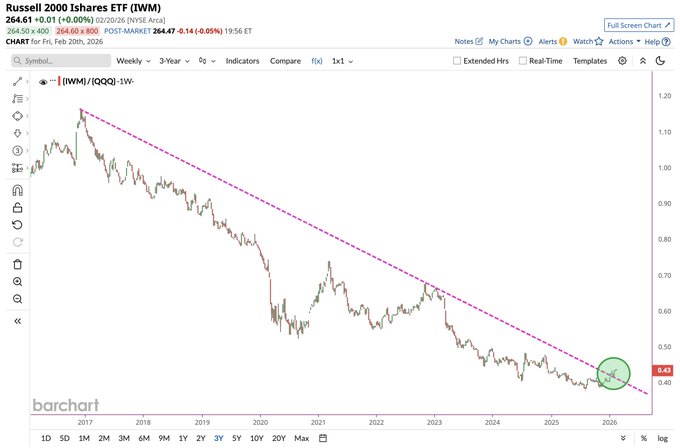 Small Cap Stocks $IWM breaking out against the Nasdaq $Invesco QQQ(QQQ)$ for the first time in more than 9 years 📈📈