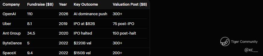 OpenAI vs Past Mega-Fundraises Table π