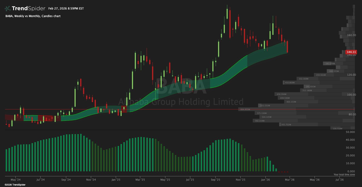 Monthly BX Turns Red $BABA $CVNA $META $ORCL at Risk