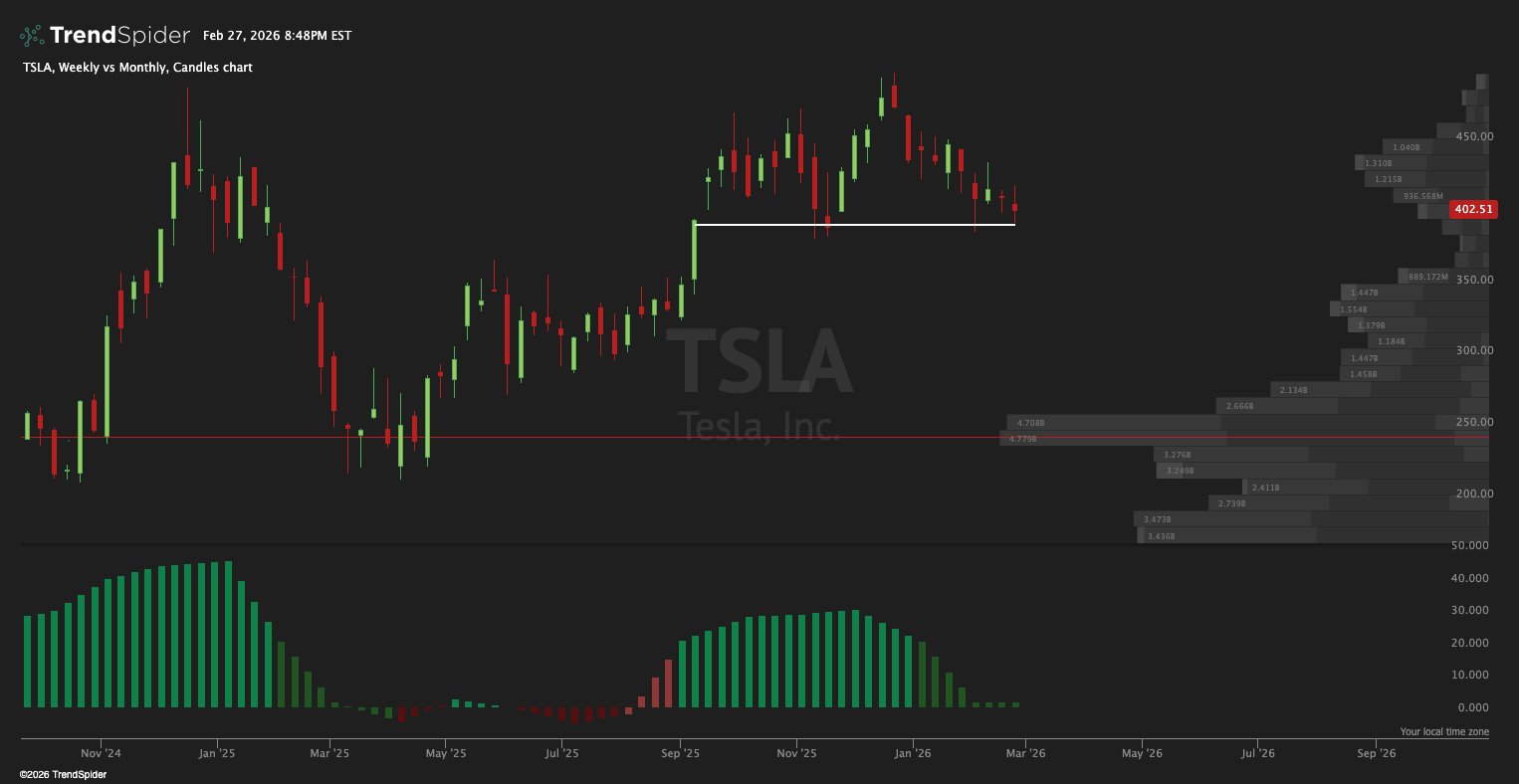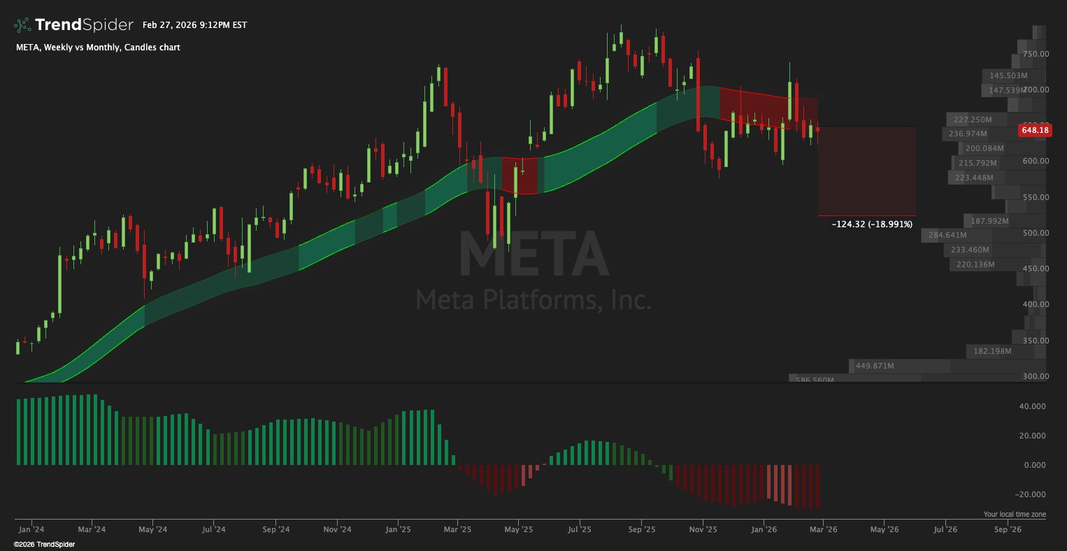 Markets are entering a decisive phase as multiple big-cap names flash dark red monthly signals.