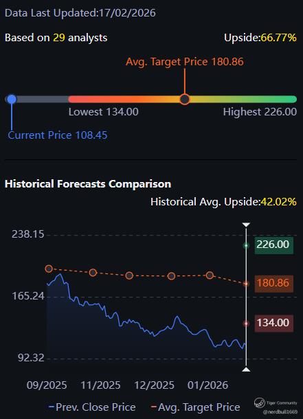 The stock currently trades near the bottom of its 52-week range (~$108), a 45% discount from its peak. This "compressed" valuation, combined with recently lowered EPS bars, creates a "buy the news" setup if the company beats on margins.