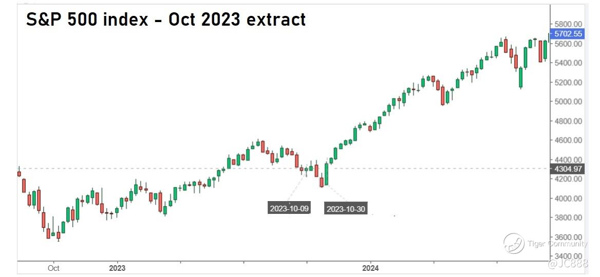 The real rally began in late October 2023, cross-referencing with a cooling of US Treasury yields rather than ground-level peace.