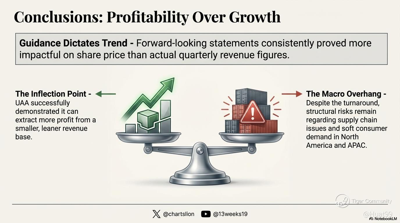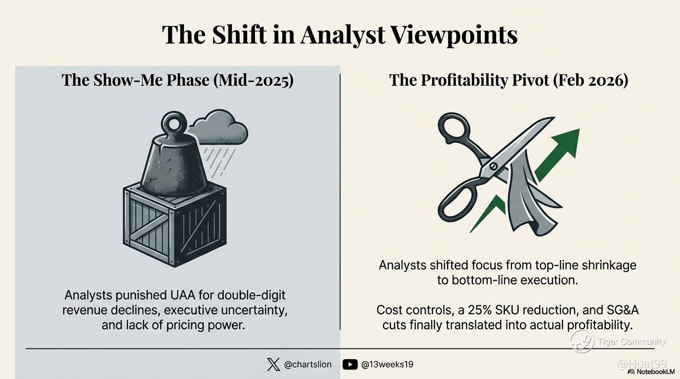 From a brutal -18% crash in Aug 2025 (fueled by margin fears and tariff overhangs) to this latest breakout, the narrative has completely flipped. Wall Street stopped punishing $UAA for shrinking top-line revenue and started rewarding bottom-line execution! 📈