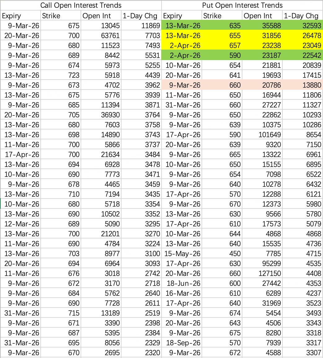 Weekly put spread: buy 655 $SPY 20260313 655.0 PUT$ , sell 635 $SPY 20260313 635.0 PUT$ .