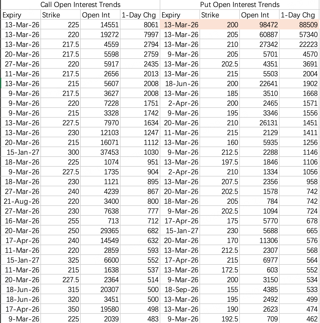 200 put $AMZN 20260313 200.0 PUT$  — 88k opened.