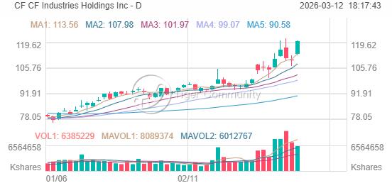$CF Breaks Its 52-Week High at $121.80 After 9% Gain