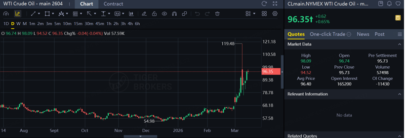 # WTI Crude Oil Prices Surge Over 10%, Exceeding $96 per Barrel Amid Strong Market Gains