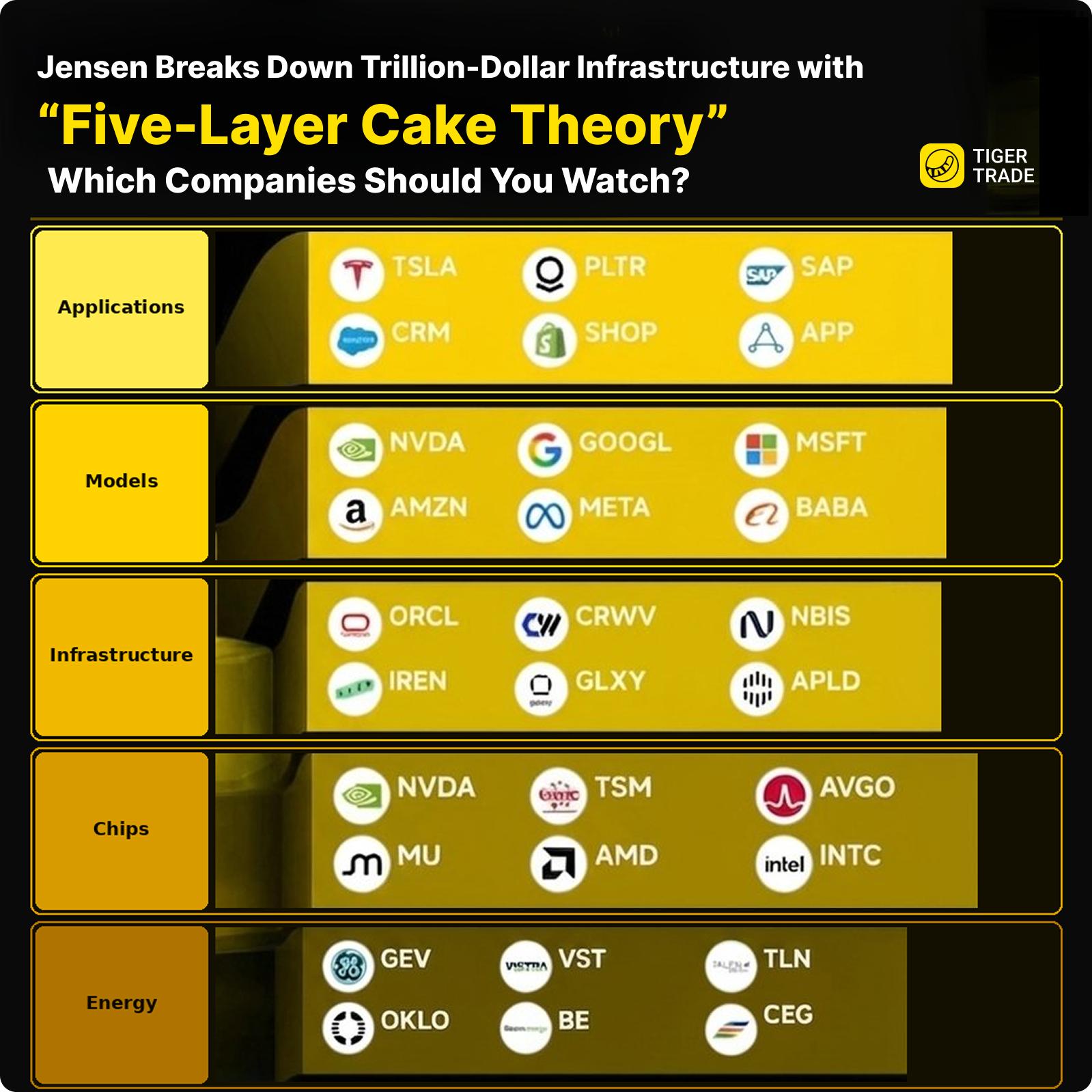 • Which layer are you most heavily positioned in right now? NVDA in the chip layer? Tech giants in the model layer? Nuclear stocks in the energy layer?