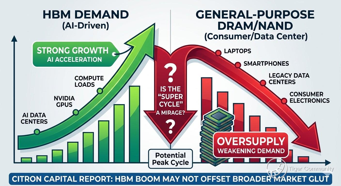 While everyone is obsessed with HBM (High Bandwidth Memory)—the specialized chips powering AI giants like $NVIDIA(NVDA)$ —Citron argues that the "rest" of the market is quietly rotting.