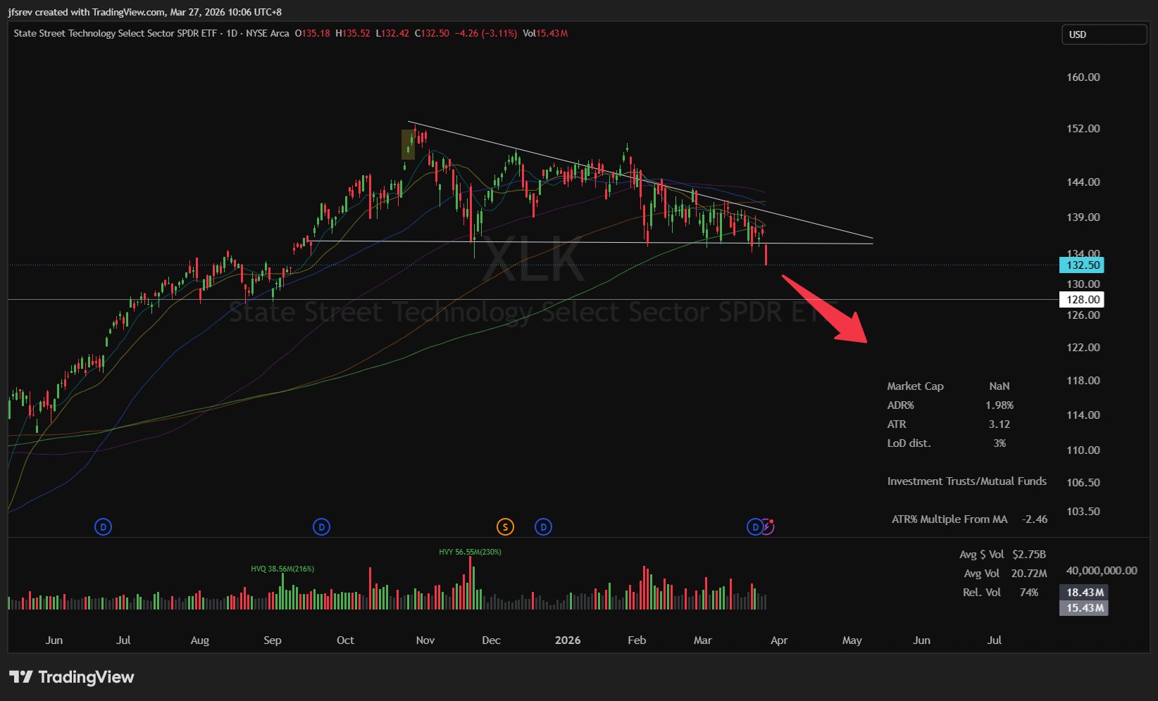 Descending Triangle Break in $XLK Sends $SPY $QQQ Lower