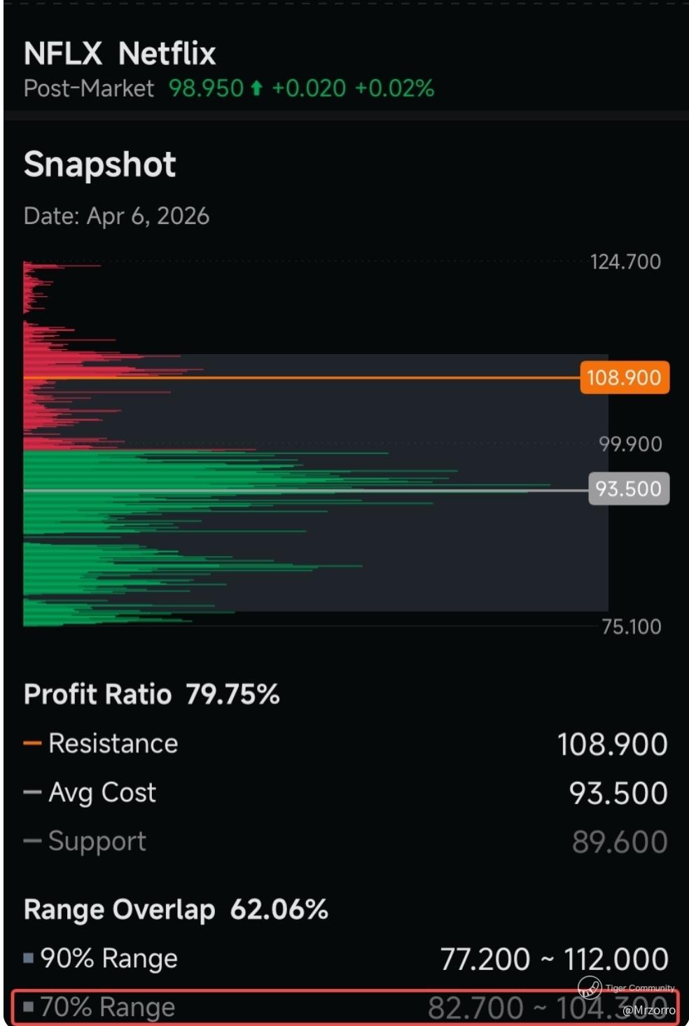 Netflix's earlier advance took the stock price near the top end of the purchase price range for 70% of the existing holders, making the shares susceptible to pullbacks as some investors look to exit before the gains reverse.