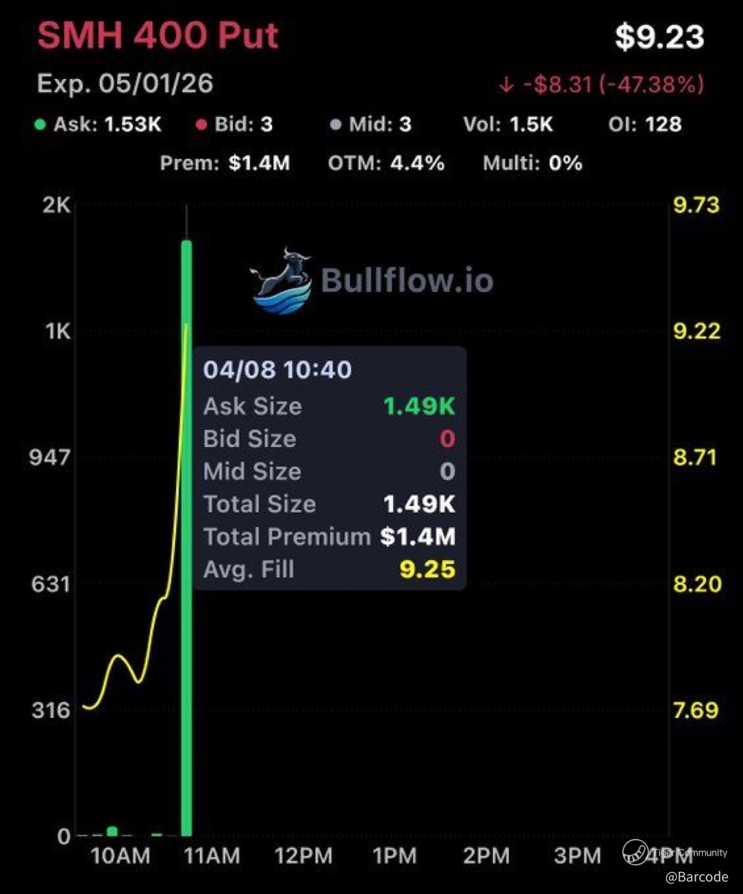 🚨 $SMH Semi Whale Warning: $1.4M Downside Hedge Signals Institutional Caution
