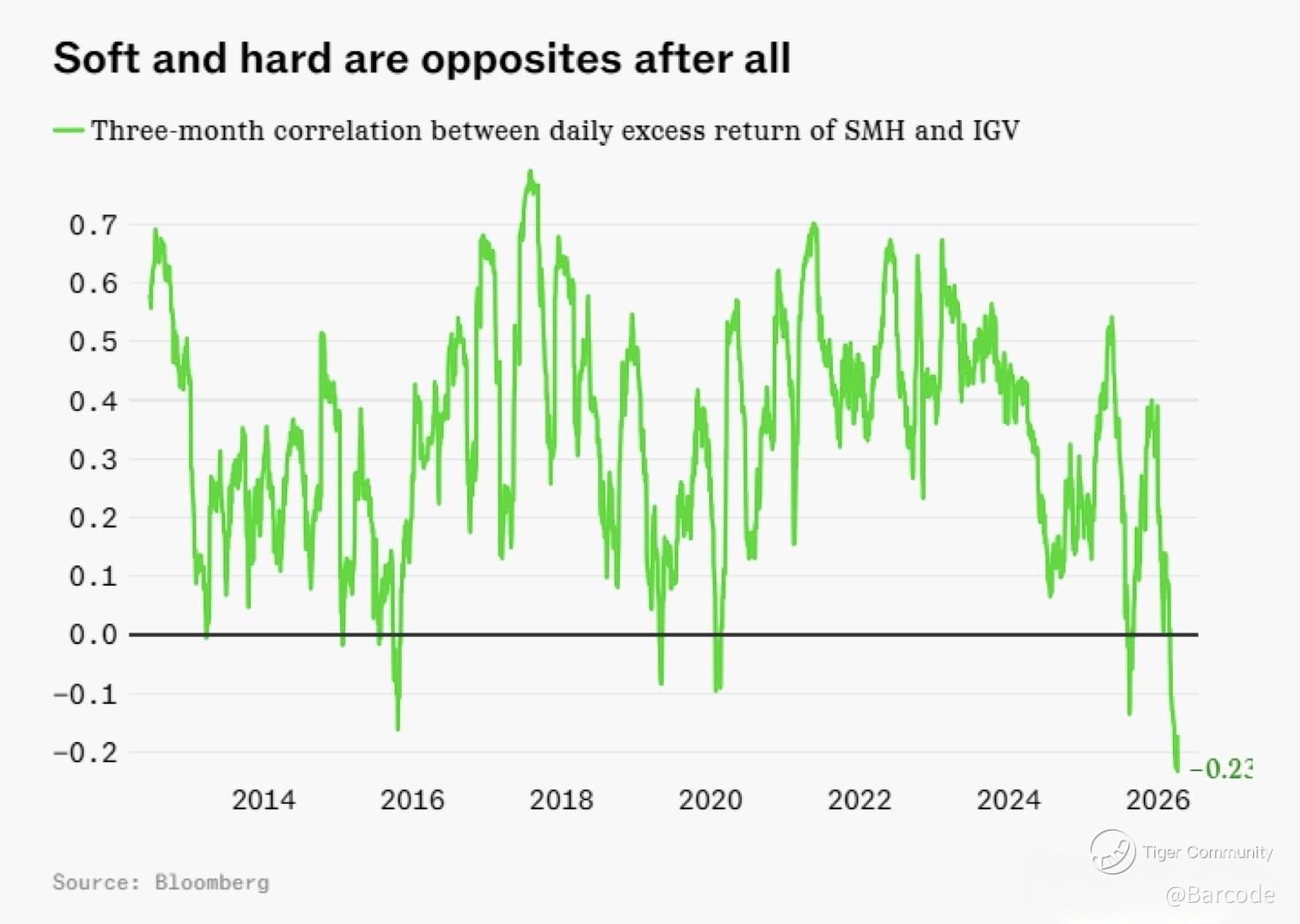$SMH is pressing highs while $IGV continues to break down, reflecting a decisive shift in where AI-driven value is being captured.