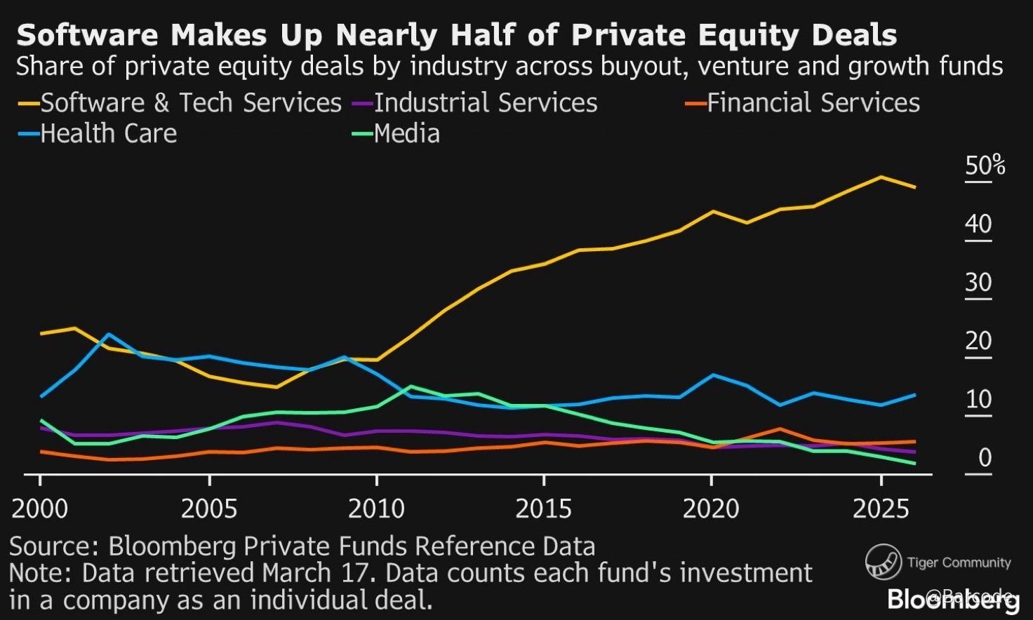 “Private markets’ software pain is about to get worse. A looming wall of debt, elevated rates, and AI disruption are compressing recovery values across SaaS assets.” Bloomberg