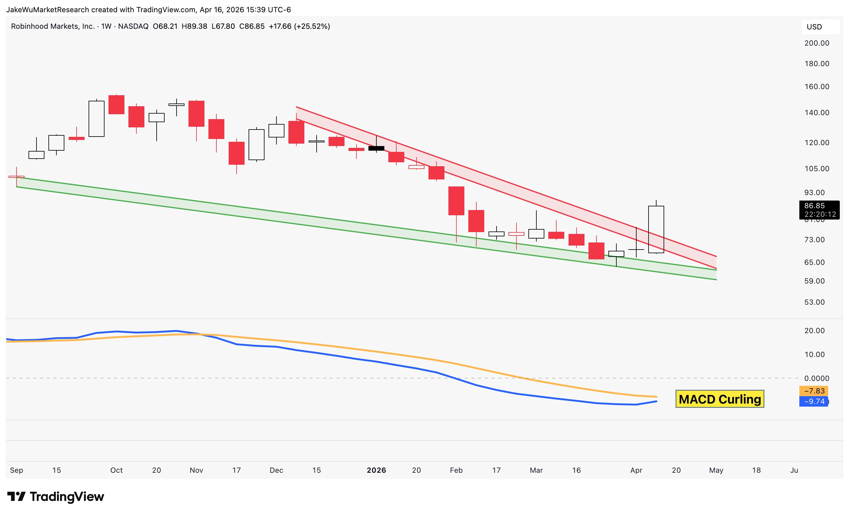 $Robinhood(HOOD)$Safe to say the falling wedge broke out this week.