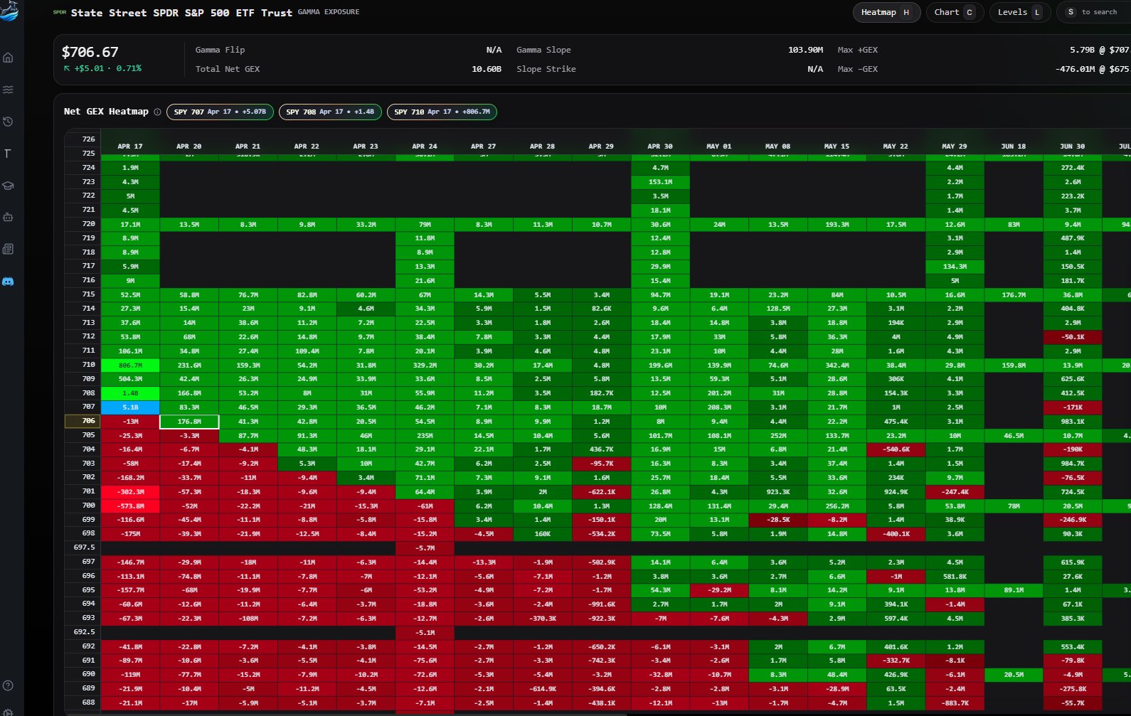You can clearly see negative GEX sitting under price. If this breaks, moves can accelerate lower toward 697.