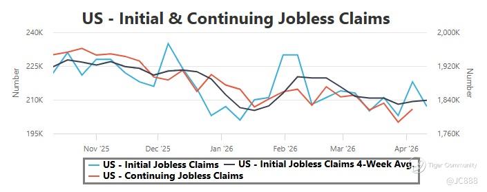 Thu, 16 Apr 2026 - Jobless claims - weekly & continuing.