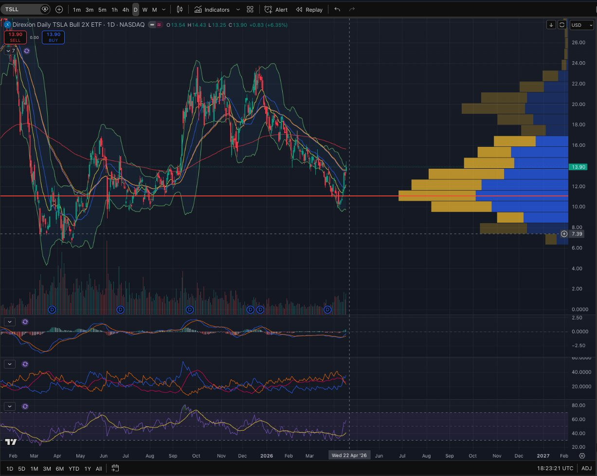 Also gonna write puts on $Direxion Daily TSLA Bull 2X Shares(TSLL)$ to play $Tesla Motors(TSLA)$ earnings. Looking at the May 15 expiry, 7 or 8 strike, and will write in volume.