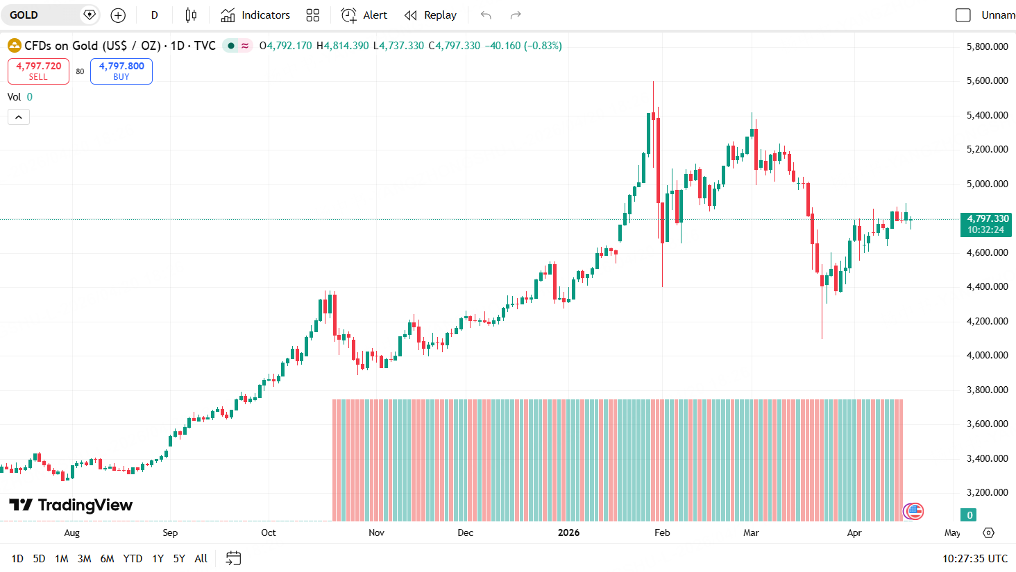 Gold: 4,794.7 USD/oz