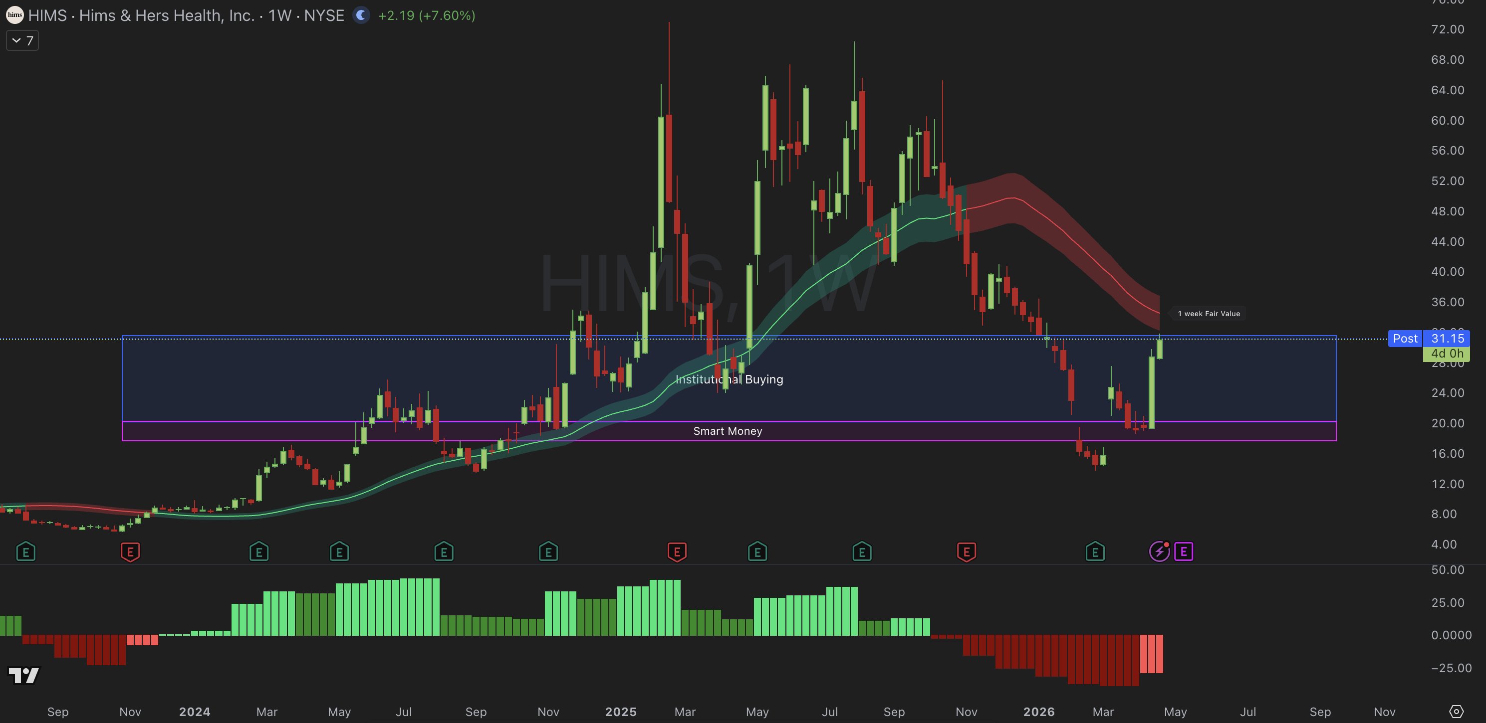$HIMS ripped +120% off the Smart Money Zone but is now slamming into a major rejection level.