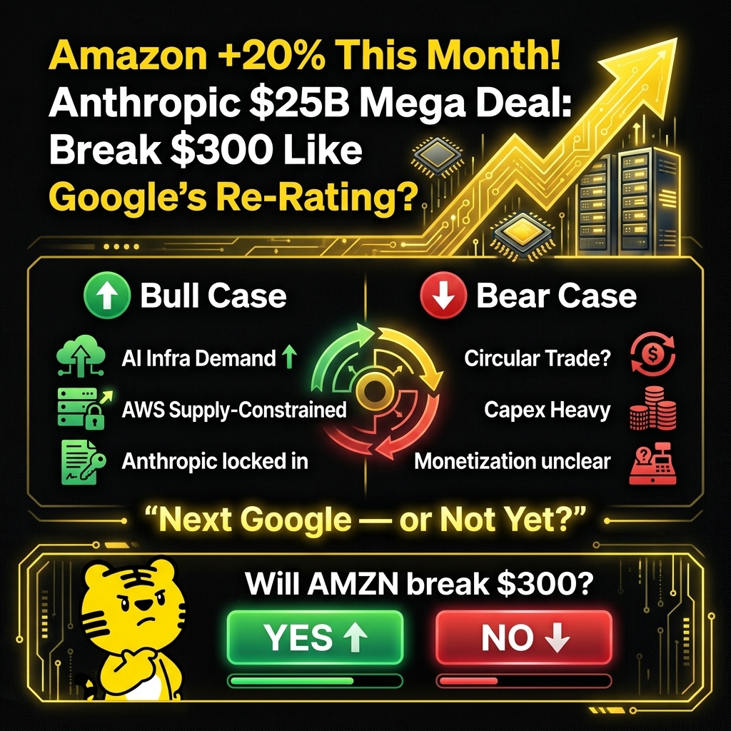 Amazon +20% This Month! Anthropic $25B Mega Deal: Break $300 Like Google’s Re-Rating?