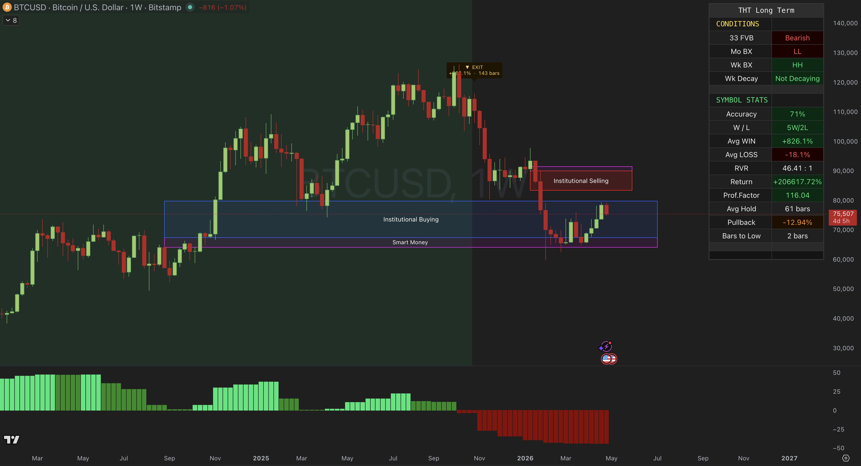 Monthly BX still shows buying pressure, but the 33 FVB is red. Last time we saw this combo, it was a trap.