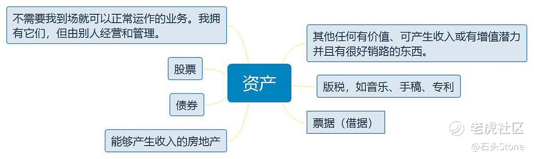 - 貸款買一套房用於出租,收取的租金可以滿足房子的一切支出並且還可以產生盈餘,因此這套房子是你的資產。