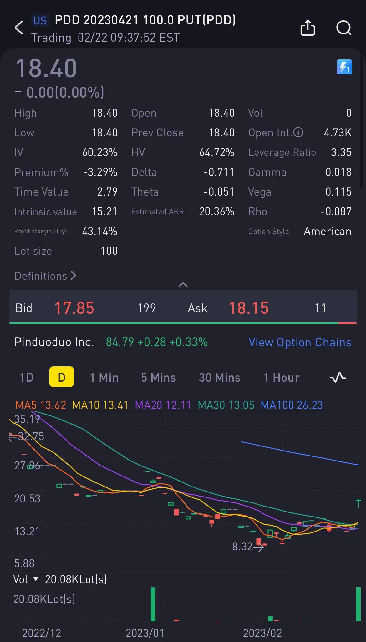 - 這筆資金繼續持有4月21日到期行權價爲100的put做空拼多多不划算