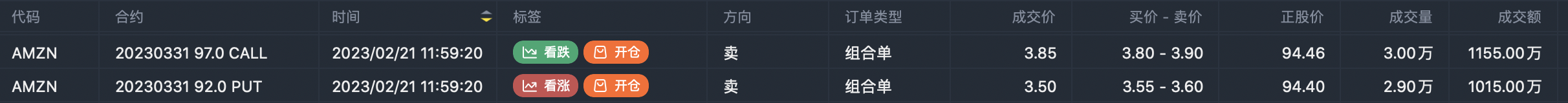 到期日3月31日,如果亞馬遜股價介於92~97之間,那麼這家機構可以直接收穫2170萬權利金。