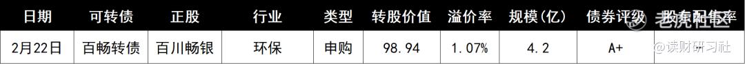 週一無可轉債上市或打新,2月22日有百暢轉債申購,提前預告下。