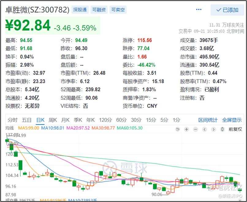 由於舉牌後會受到嚴格的減持及信息披露限制,因此公募基金罕有舉牌上市公司,蔡嵩鬆的舉動讓市場感到震驚。在諾安成長舉牌後,卓勝微的股價僅上漲了一天,隨後便連續下跌,再次創下近期新低。這也說明,市場投資者並不看好諾安成長舉牌。