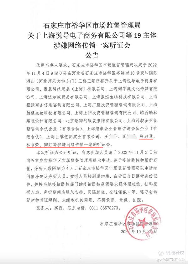 11月7日,張庭夫婦涉嫌網絡傳銷一案聽證會結束。