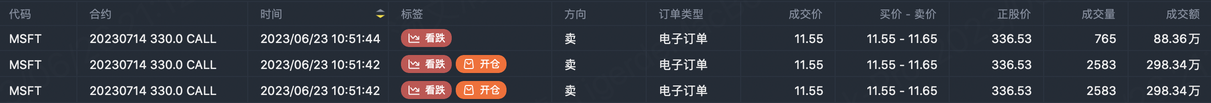 In contrast, Microsoft's trend is not too optimistic. Options Large order Sell Microsoft call options, strike 330, below the stock price of 334. My preference is for Microsoft to move sideways for the next two weeks.