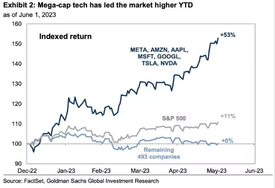 Looking back, we all witnessed the mega-cap stocks lead the rise of $S&P 500(.SPX)$ due to the wave of AIGC. The whole 11 sectors' performances show a differentiation: The technology sector sees a 33.71% rise, followed by communication services and consumer cyclical sectors with 31% and 21.34% gains respectively. Then the rest of the sectors didn't see a comparison rise.